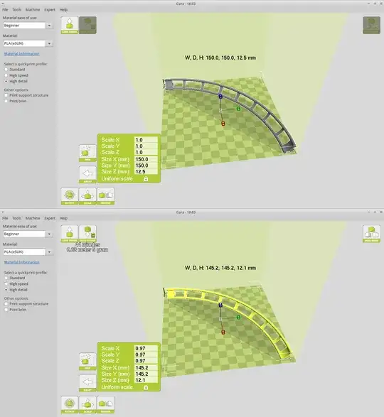 Cura does not seem let the full print area to be used. My printer is a Lulzbot Mini. The design illustrated below can be found here.