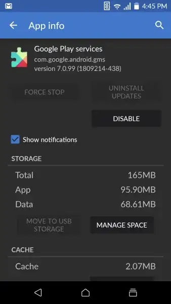 Force stop is disabled If either the "Disable" or the "Force Stop" buttons are disabled then: