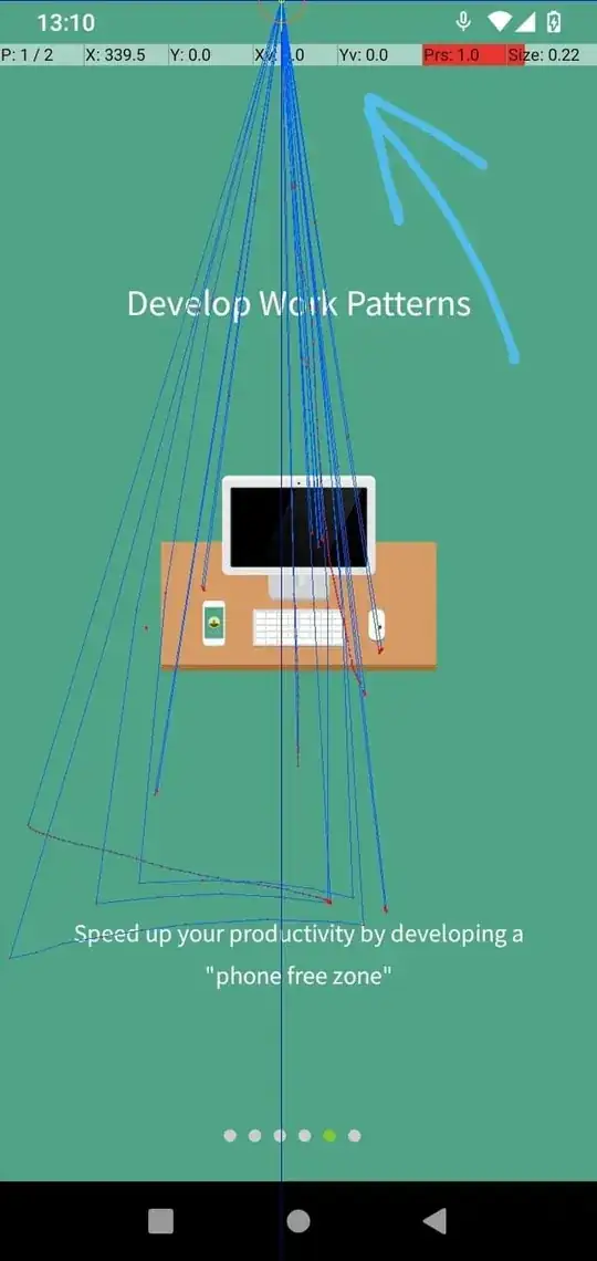 When I then touch the screen anywhere else with just one finger, it detects two touch inputs. My screen is unusable in this state (obviously). I have to turn the screen off and back on again to get rid of this error. Here is a screenshot of the issue: