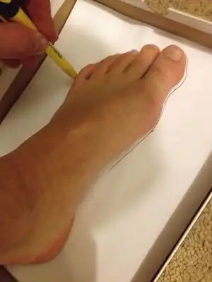 Place your bare foot on a piece of paper. Trace the outline of your foot on the paper.