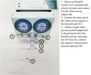 - Select a PneuFlo resistor (shown below) to stimulate airway resistance, and connect to the 15 mm airway adaptor.