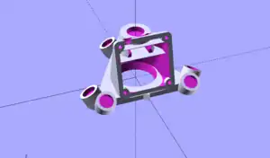Carriages snap onto LM8UU linear bearings and are attached to a drive belt by a screw passing through the carriage web and a printed fixed belt terminator that is attached to one end of the GT2 drive belt. A pair of high strength neodymium ring magnets serve as sockets for steel ball bearings that are affixed to aluminum connecting rods, forming a low friction, large angle ball joint. The carriages move vertically on tool steel guide rods and engage the limit switches via a screw threaded into the tops of the carriages. | 3 |
