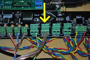 - Connect the limit switch conductors to their respective axes e.g. the limit switch above the U motor is attached to the U limit switch (marked XSTOP), etc. There is no polarity concern.Connect limit switches.