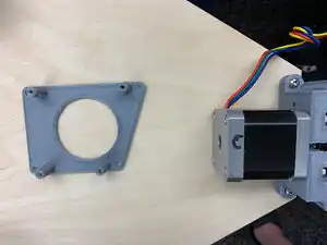 - Refer to picture: With the four #6 x 1/2" sheet metal screws, attach the Athena Board mount to the underside of the base in the orientation shown - note location of the W motor (the motor on the apex having the extruder drive on it) with respect to the Athena Board Mount.Attach the Athena Board mount to the base in the orientation shown.