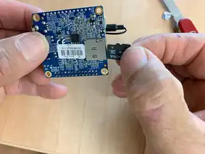 - Insert the microSD card into the Orange Pi Zero, contacts go towards the board.Insert the microSD card.