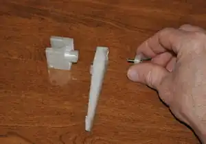 - Ream the 3mm holes in the drive body and linking rod with a 3mm drill bit.