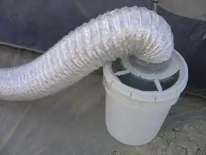 - Duct tape one end of the 4" Flexible Ducting to the Ducting Flange on the Air Filter Bucket. Pull the other end of the 4" Flexible Ducting into the tend and duct tape it to the Ducting Flange on top of the Cooling Bucket.