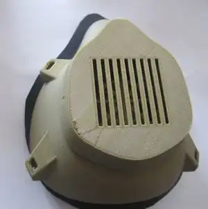 • Dipping mask in boiling water for 5-10 sec allows for some facial adjustments. Here's a test using scrap PLA. Could be used to fit face of individual.