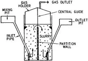 - KVIC model with a cylindrical digester, the oldest and most widespread floating drum biogas plant from India.