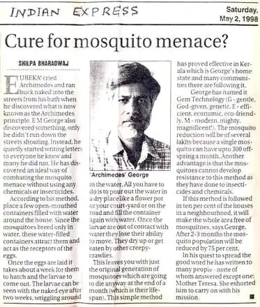 Clipping from a TV interview on GEM mosquito control