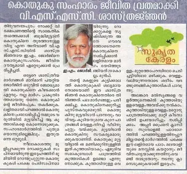 The Hindu Thiruvananthapuram (page 20, 4 Apr 2016) reported: "Now, a novel method to trap mosquito eggs"