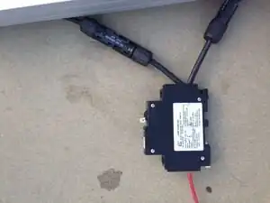 Connect the positive wire from the PV array to the 30Amp breaker, then into the charge controller. Make sure the breaker is switched to the off position.