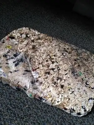 After the pieces were cut up and brought down to size, Paul Fraley from the MTU materials science & engineering department allowed us to melt the plastic in a furnace housed by their facility. The plastic was melted in a 8.5" x 12" baking pan, and did not turn out to a quality that should be machined. The melted plastic is far to brittle, and it failed to melt entirely through. This plastic is also very hard to melt, as a furnace would have to reach past 500 degrees Fahrenheit or 260 degrees Celsius.