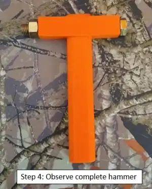 - The previous design uses a bolt threaded into the plastic, which as stated on the page requires an additional tool in the form of a wrench to install the bolt, and a vise to hold the hammer head to insert the bolt. My design uses a close fit clearance hole with a through bolt to remove the need for additional tools (that may inflate the cost) to assemble it. My reported cost is a worse case scenario of everything needed to assemble the hammer, without needing additional hand tools, a vise, and a bench of some form to secure the vise to.