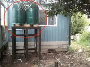 Modern cisterns are usually large plastic tanks. Gravity tanks on short towers are reliable, so pump repairs are less urgent. The least expensive bulk cistern is a fenced pond or pool at ground level.