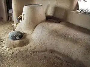 - Heat exchanger: a tubular metal shield that forces hot gases from the chimney to pass over the sides of the cooking vessel (like the one used in the Rocket stove mass heater).