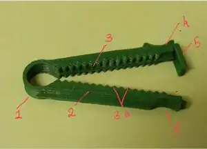 Feature Illustration for SCAD edit - After printing, clean the extra hanging plastic threads near the finger grips with a sharp knife