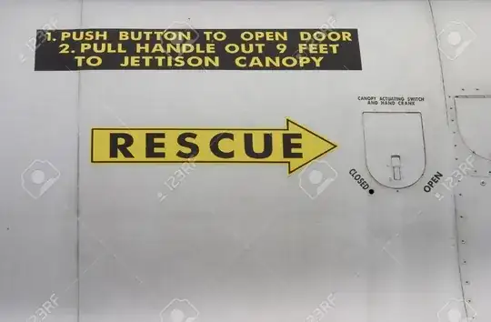 I've noticed that a lot of military jets often have an arrow decal with the wording "RESCUE" pointing to a rectangle of some sort. I tried looking around for information about it but I could not find anything. What is the purpose of that rectangle the arrow points to?