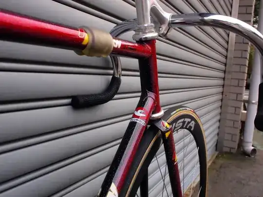 Now, getting to the pad on the top tube, that is a protector that some riders use to protect the tube if it gets hit by the handlebars. Since there is no front brake or cables on the bike when one is racing, it's quite common, if one crashes, for the handlebars to rotate around and hit (and sometimes dent), the top tube. Track bars usually only have grips on the flat part of the drops, so you are risking metal to metal contact when that happens.