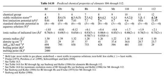 Here is a list of some predicted basic properties of the period 7 $d$-block elements, including roentgenium (source, p. 1691):