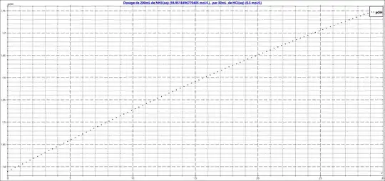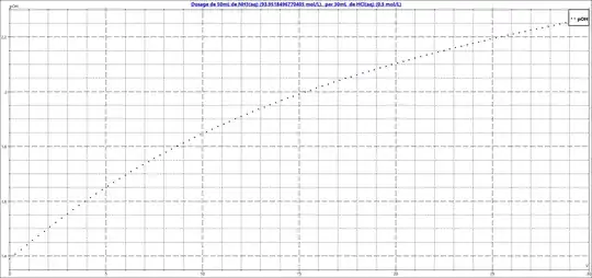 Now flipping back: the OP’s scenario involving a weak base titrated with strong acid. For reasons that will become clear, assume the hypothetical weak base has $\mathrm{p}K_\mathrm{b} = 9.80$, and that the strong acid is $\pu{0.1 M} \ \ce{HCl}$ solution. Note that the $\mathrm{p}K_\mathrm{b}$ is simply $14$ (treated as exact throughout) $- 4.20$.