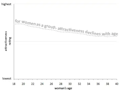 If on the other hand you delete the most and least attractive women for each age group, the general "slant" of the graph and the decrease in attractiveness that it represents does not change at all.