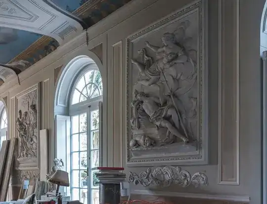 Can you identify for me the culture/style of these bas-reliefs? It would also be great if someone happened to know the name of the house where the scene was shot.