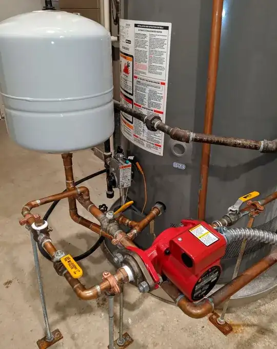 *** "I have turned the pump off (electrically) and left all valves open (recirculating and public water valves open). I get full pressure and hot water goes cold after 30 seconds."