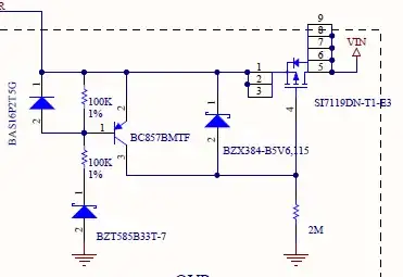 This is supposed to provide over voltage protection for a system placed in a car.Can anyone explain the functionality of each component? I know that this is basically 2 switches; but when will the switches be triggered ? Usage of BZT585B33T is confusing due to its break down voltage at 33V; while battery voltage is typically 12V