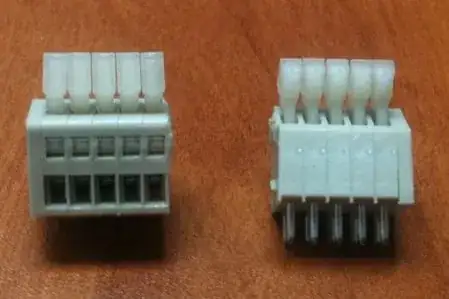 2) The wires go in the holes on the bottom as seen in the left-hand block, right?