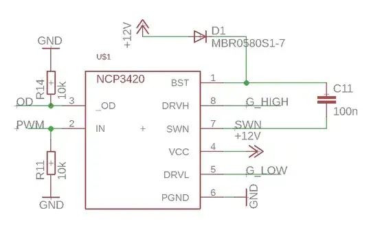 The circuit is working, but sometimes the driver fails during power-up with the controls pulled low, shorting out the 12V supply. What would cause this?