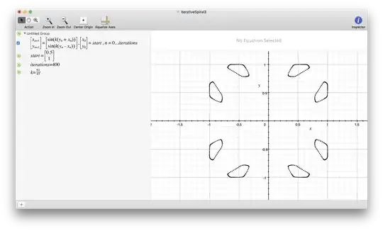 $$ x_{n+1} = \sin(k(y_n + x_n))\\ y_{n+1} = \sin(k(y_n - x_n)) $$ Here's an animation starting from an initial state of [0.1, 0.2] and k increasing from 0 to 2: