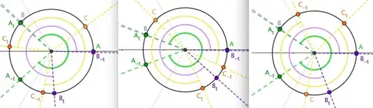 One revolution is added/subtracted to the angles algebraically whenever necessary. For example, $B_t$ has angle $b + t~$ that sometimes is in fact $b + t - 1$ because $\theta \in [\frac{-1}2, \frac12)$.