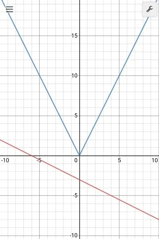 But this answer is wrong because looking at the graph I can see that the absolute value function is always above the straight line.