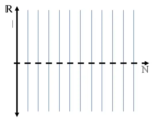 I know that it is possible to have a Cartesian product for two sets of different cardinalities if the cardinality of both sets is finite. Taking $A = \{1,2\}$ and $ B = \{3,4,5\}$, $A \times B = \{(1,3),(1,4),(1,5),(2,3),(2,4),(2,5)\}$. But what if we have one set where it has uncountably infinite elements and one with countably infinite elements? Does $\mathbb{N} \times \mathbb{R}$ make sense? I can understand it geometrically as the graph shown below but I'm not well versed enough with set theory to know if rigorously speaking this creates any problems/is allowed.