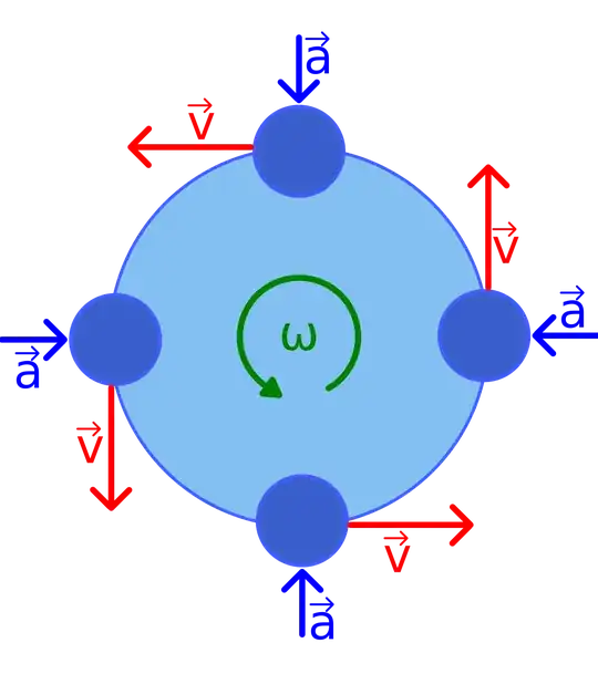 Likewise, the blue acceleration vectors (which should, for consistency sake, emanate from points along the curve, just as the red velocity vectors, but I guess due to lack of space, the picture is drawn the way it is) also belong to the same vector space as the red velocity vectors.
