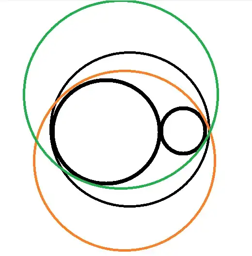 The thick black inner circles are $C_1,C_2$ and the thinner black, red and green circles are possible $C$s