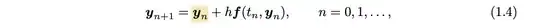 (Non-bold f (the right side of the continuous), F (the right side of the discrete), y above are less strict notations. $t_n, t$ are the same as long as they equal; there is only one time-(real)numbering system here.)