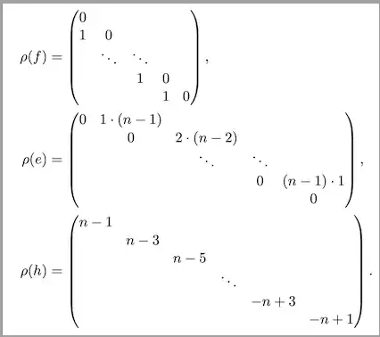 I want to find decompose $\mathfrak{sl}_2$ as a direct sum of irreducible representations of $U(\mathfrak{sl}_2)$ which is the universal enveloping algebra of $\mathfrak{sl}_2$. I have a theorem that basically does the job for me by classifying all irreducible representations of $U(\mathfrak{sl}_2)$ saying for each $n\in \mathbb N^{*}$ there is a unique (up to iso) irreducible representation of dimension $n$ and the action of $U(\mathfrak{sl}_2)$ is given by