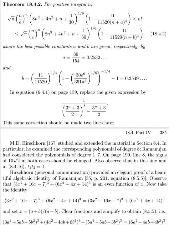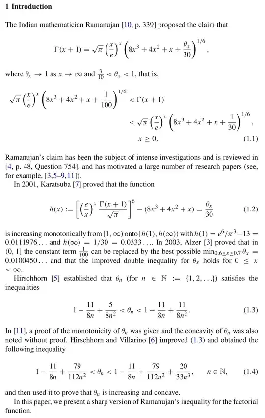 So let's state the altered version of Ramanujan's factorial approximation: