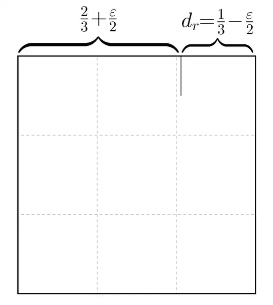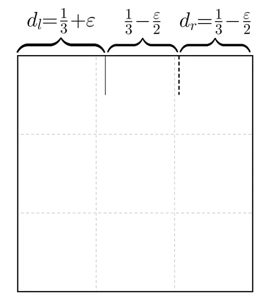 Next, divide the right part into two for the first approximation of $d_r$ (by taking the right side of the paper to your first pinch; again, just a pinch). This gives you $d_r=1/3-\varepsilon/2$, thus, a better approximation!