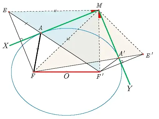 Now suppose that this $L$ passes through some arbitrary external point $T(X,Y)$, then our quadratic in $m$ as above is $m^2(a^2-X^2)+2XYm+(b^2-Y^2)=0$