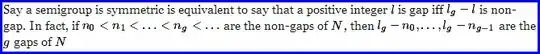 I couldn't prove if $n_0\lt n_1\lt\ldots\lt n_g\lt \ldots$ are the non-gaps of $N$, then $l_g-n_0,\ldots, l_g-n_{g-1}$ are the $g$ gaps of $N$.
