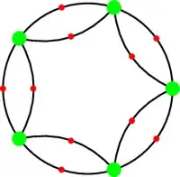 In terms of graph theory, this gives a connected bi-regular graph where the green vertices have degree $[H:H\cap K]$ and the red vertices have degree $[K:H\cap K]$. G acts as automorphisms of the graph, with H the stabilizer of a green vertex, K the stabilizer of a red vertex, and H ∩ K the stabilizer of a directed edge.