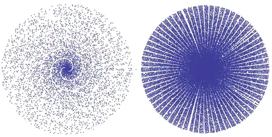 Comparison between 5,000 and 50,000 prime numbers plotted in polar coordinates