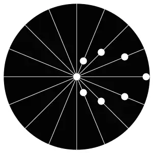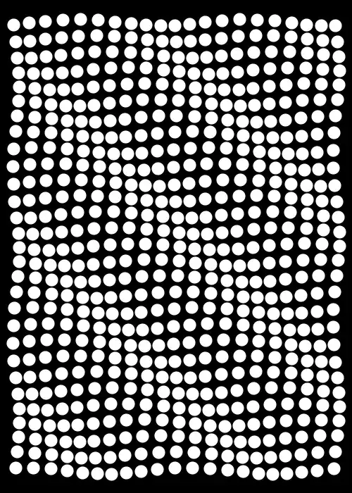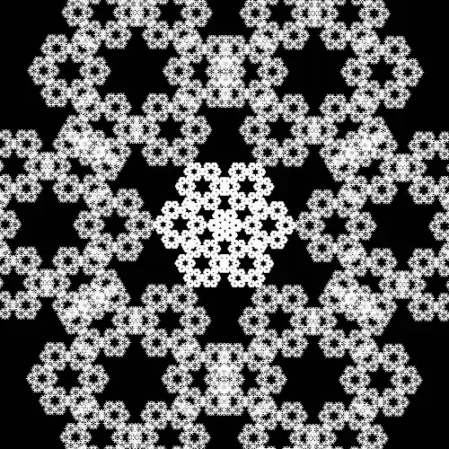 Ulam Spiral: all numbers from 1 to 100000; the more divisors a number has, the larger is the dot.