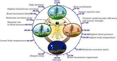 Available under CC BY 4.0. - ↑ Postolache, Teodor T. (2005). Sports Chronobiology, An Issue of Clinics in Sports Medicine. Saunders. ISBN 978-1-4160-2769-0.