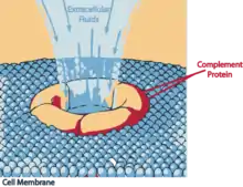 - ↑ Xie CB, Jane-Wit D, Pober JS (2020). "Complement Membrane Attack Complex: New Roles, Mechanisms of Action, and Therapeutic Targets". The American Journal of Pathology. 190 (6): 1138–1150. doi:10.1016/j.ajpath.2020.02.006. PMC 7280757. PMID 32194049.