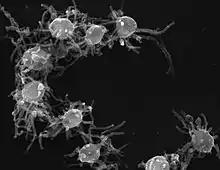From Latin filum meaning "thread" and Greek aster meaning "star", it indicates the main morphological features shared by all their integrants: small, rounded amoeboids with a mononucleated cellular body, covered in long and radiating cell protrusions known as filopodia. These filopodia may be involved in substrate adhesion and capture of prey.