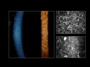 | Appearance of the cornea by slit-lamp biomicroscopy (left image) and by confocal microscopy (right image) (Courtesy Dr. Charles N. McGhee) | |